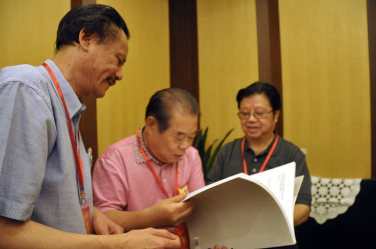 前中共中央宣传部常务 副部长,全国政协常委,中央文史委主任,中共理论家龚心瀚先生在认真翻阅王大同油画集